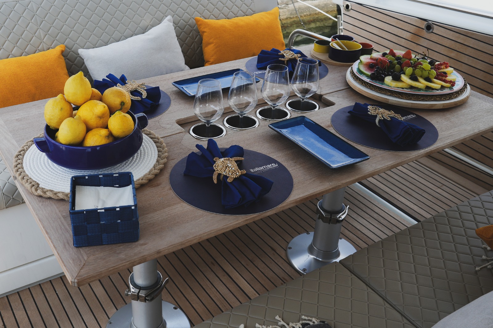 Base e logistica: La barca è situata nel porto di Marina d'Arechi, comodamente raggiungibile dall'aeroporto Costa d'Amalfi o dall'autostrada. Un posto auto riservato è incluso nel prezzo del noleggio.
