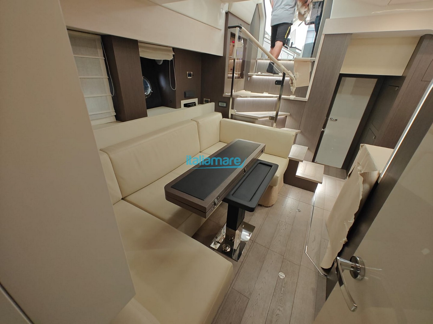 The lower saloon is an airy and well-lit environment, thanks to the wide companionway, which houses a dinette/dining area and a well-equipped and spacious galley.