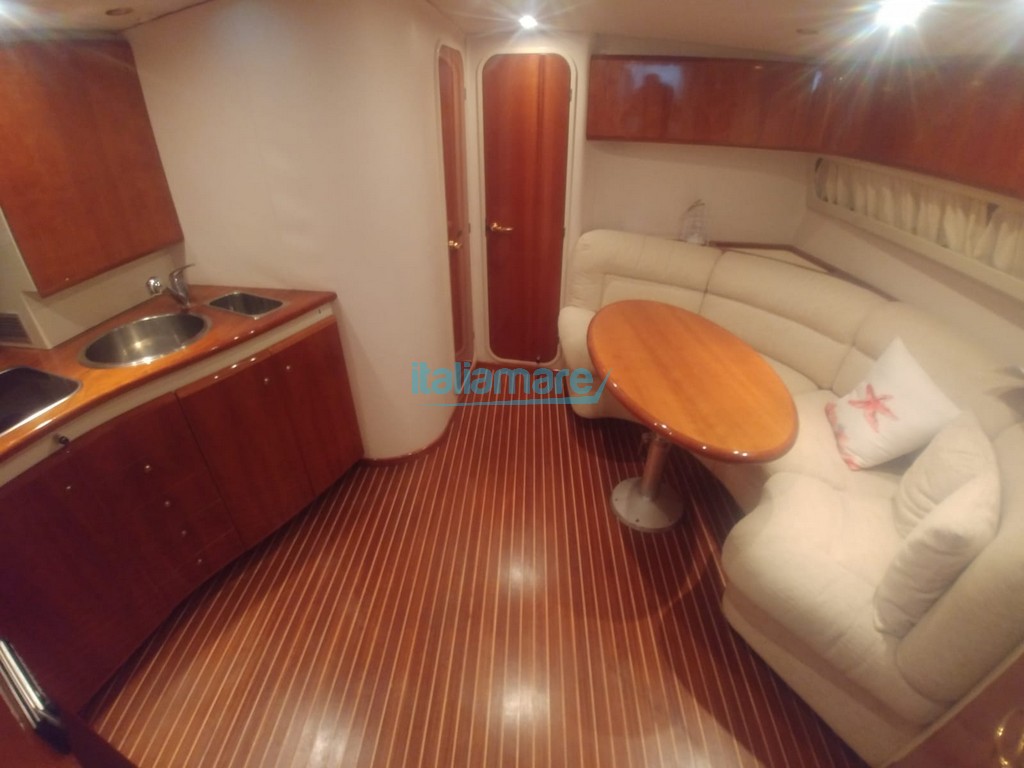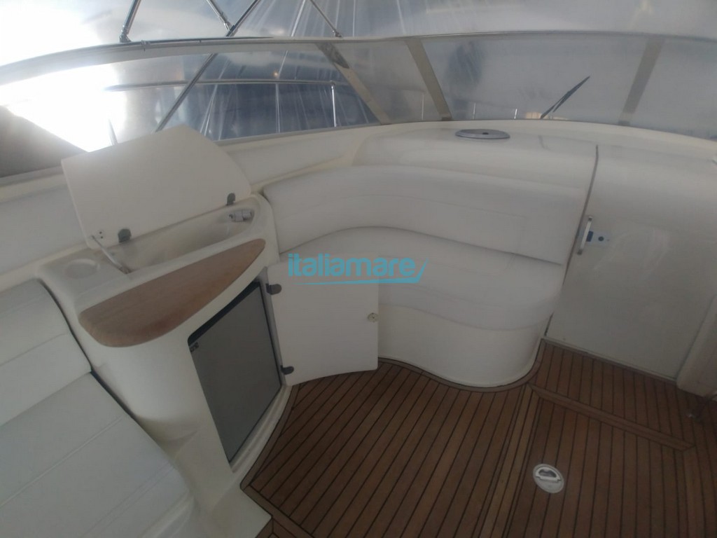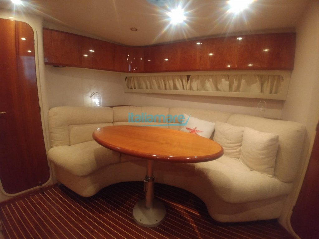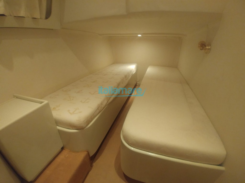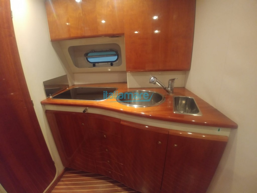 Allestimento tecnico e di coperta: Allarme motore - Autoclave - Batterie - Caricabatterie - Elica di prua - bow thruster - Faro orientabile - Flap idraulici - Indicatori Flaps - Luci di cortesia - Passerella (Idraulica ) - Pompa di sentina elettrica - Pompa di sentina manuale - Pozzetto Teak - Presa 220V banchina - Raddrizzatore - Rollbar - Salpa Ancore Elettrico - Scaletta da bagno - Tavolo pozzetto (Idraulica a scomparsa )