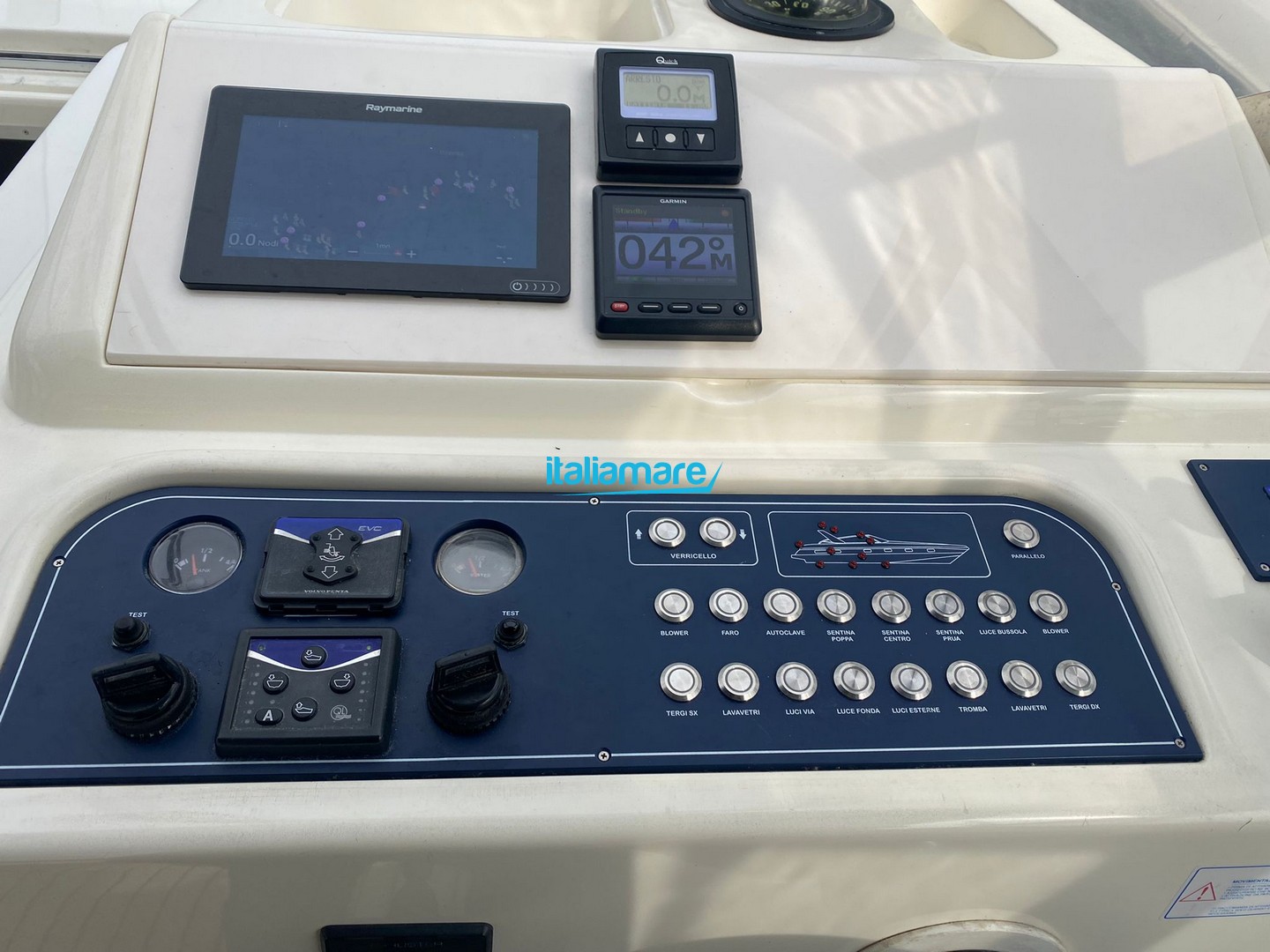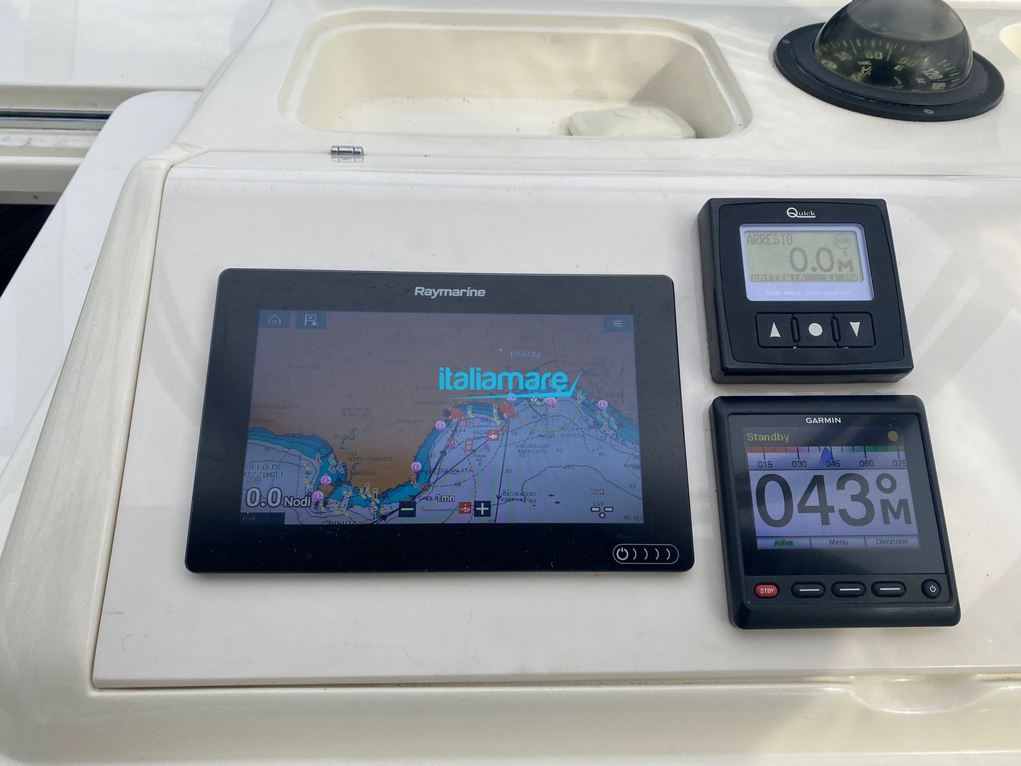 Strumentazione elettronica di navigazione: Angolo barra - Bussola - Comando motori elettronico - Contametri catena - Ecoscandaglio - GPS - Plotter - Plotter con antenna GPS - Pilota automatico - - Radio VHF