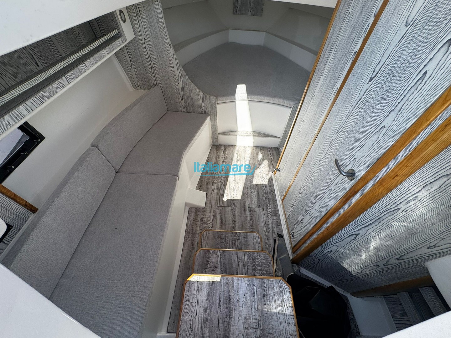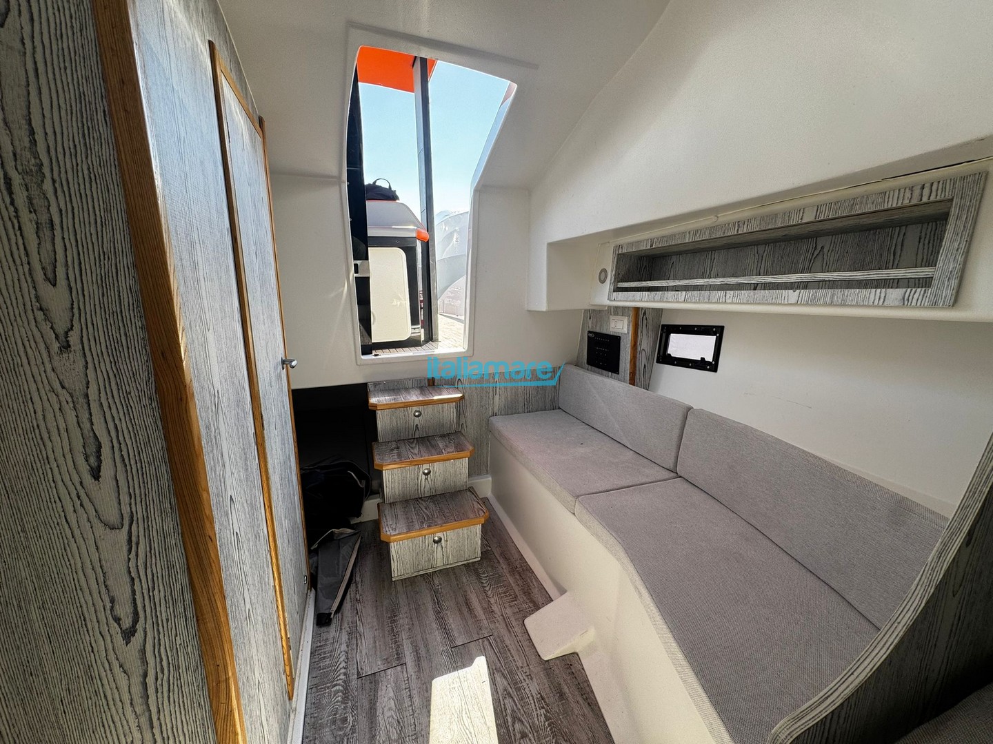 Sottocoperta la barca stupisce per un'abitabilità inaspettata: offre infatti quattro posti letto divisi tra la dinette di prua trasformabile e una cuccetta matrimoniale a poppa, completati da un locale bagno separato che garantisce la necessaria privacy.