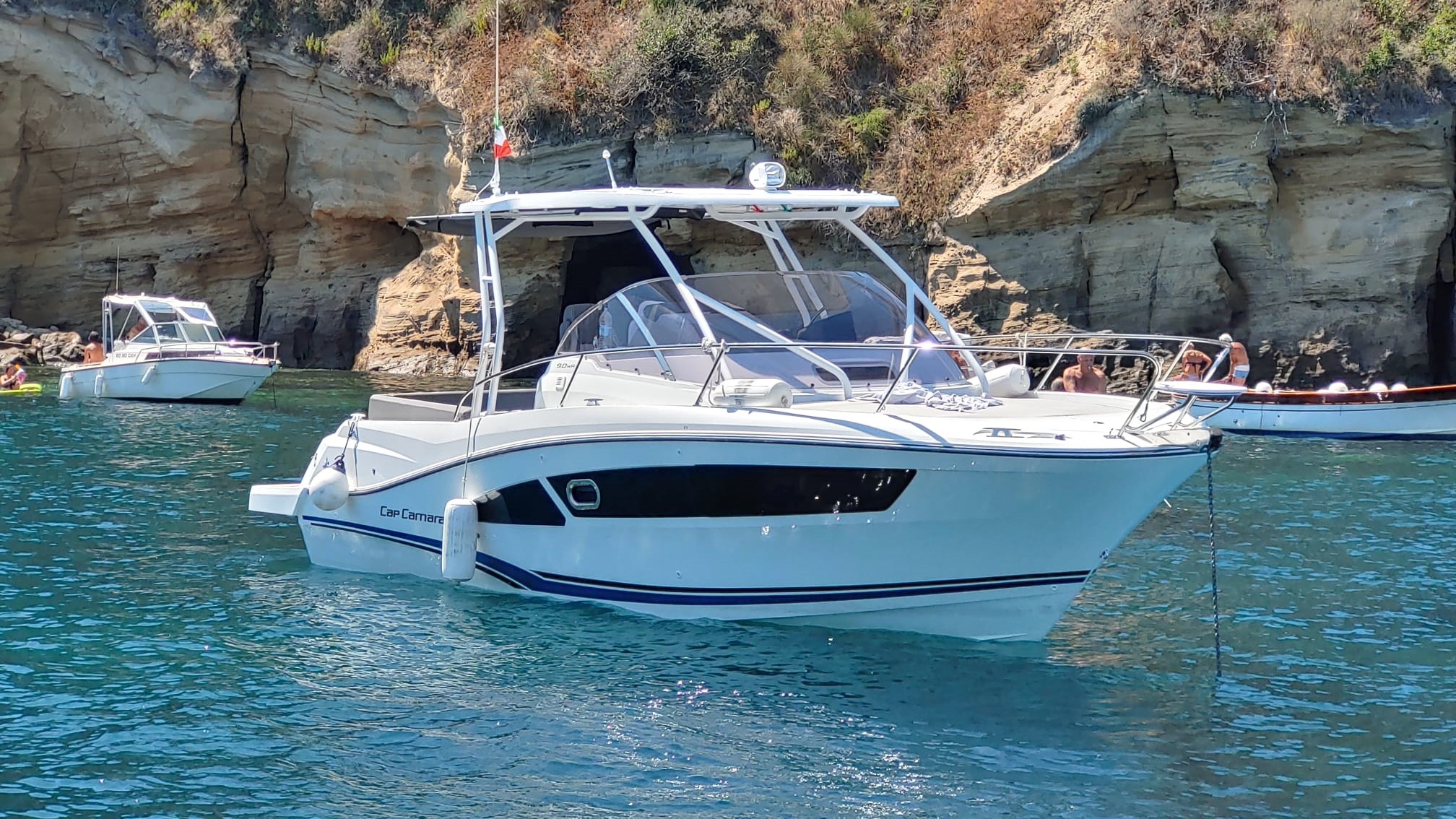 Cap Camarat 9.0 WA Serie 1 è lungo circa 8,60 m, con una larghezza di circa 2,98 m.