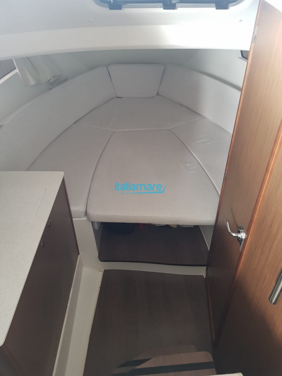 Gli interni ospitano una cabina con cuccetta doppia, angolo cottura e bagno con box doccia separato, dietro la scaletta è presente una seconda cuccetta per altri due posti letto, portando la capacità notturna a 4 persone.