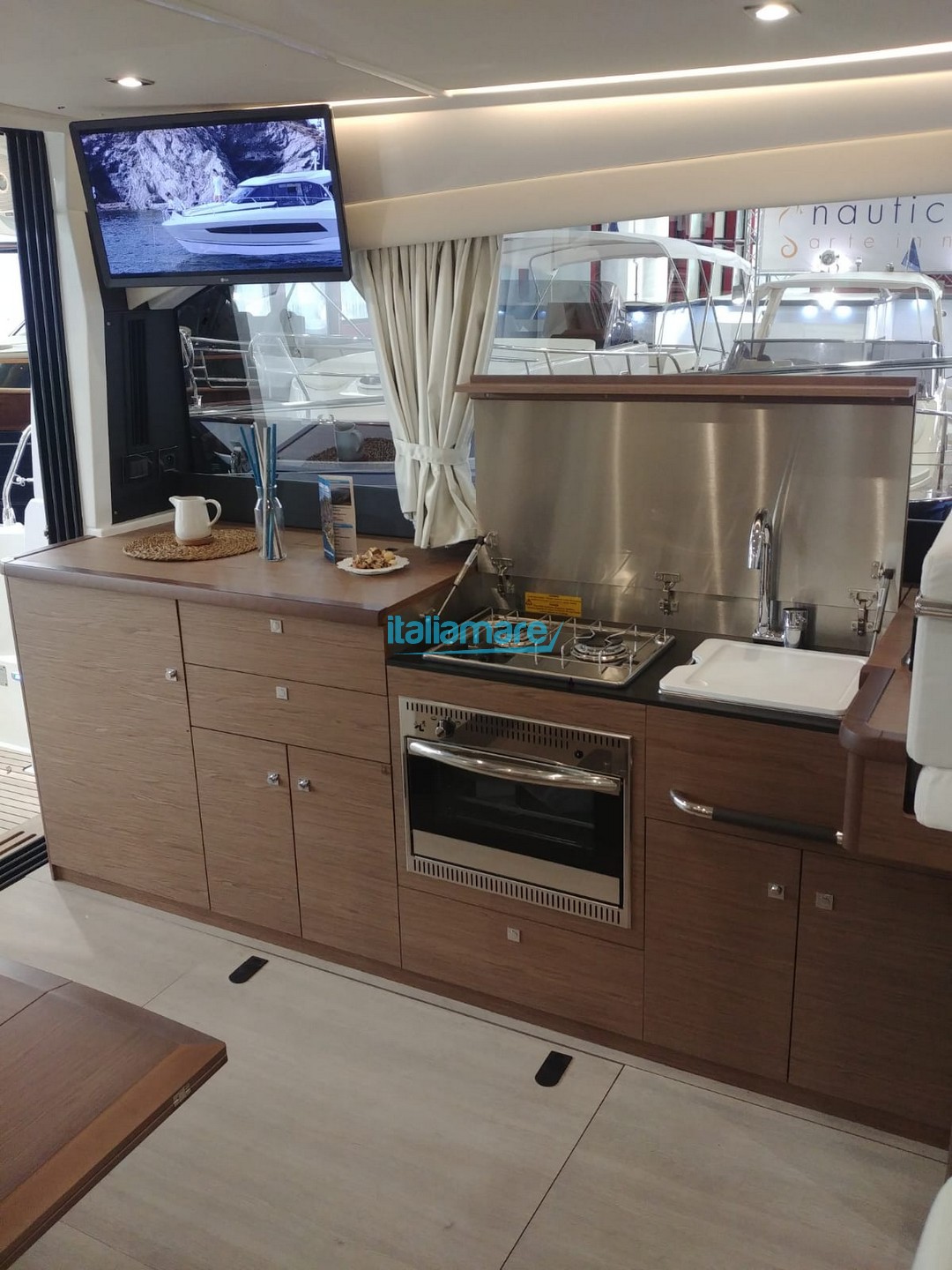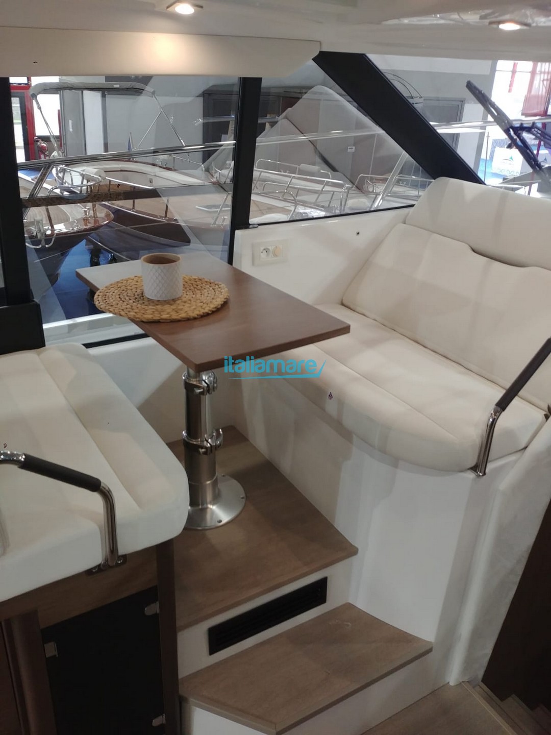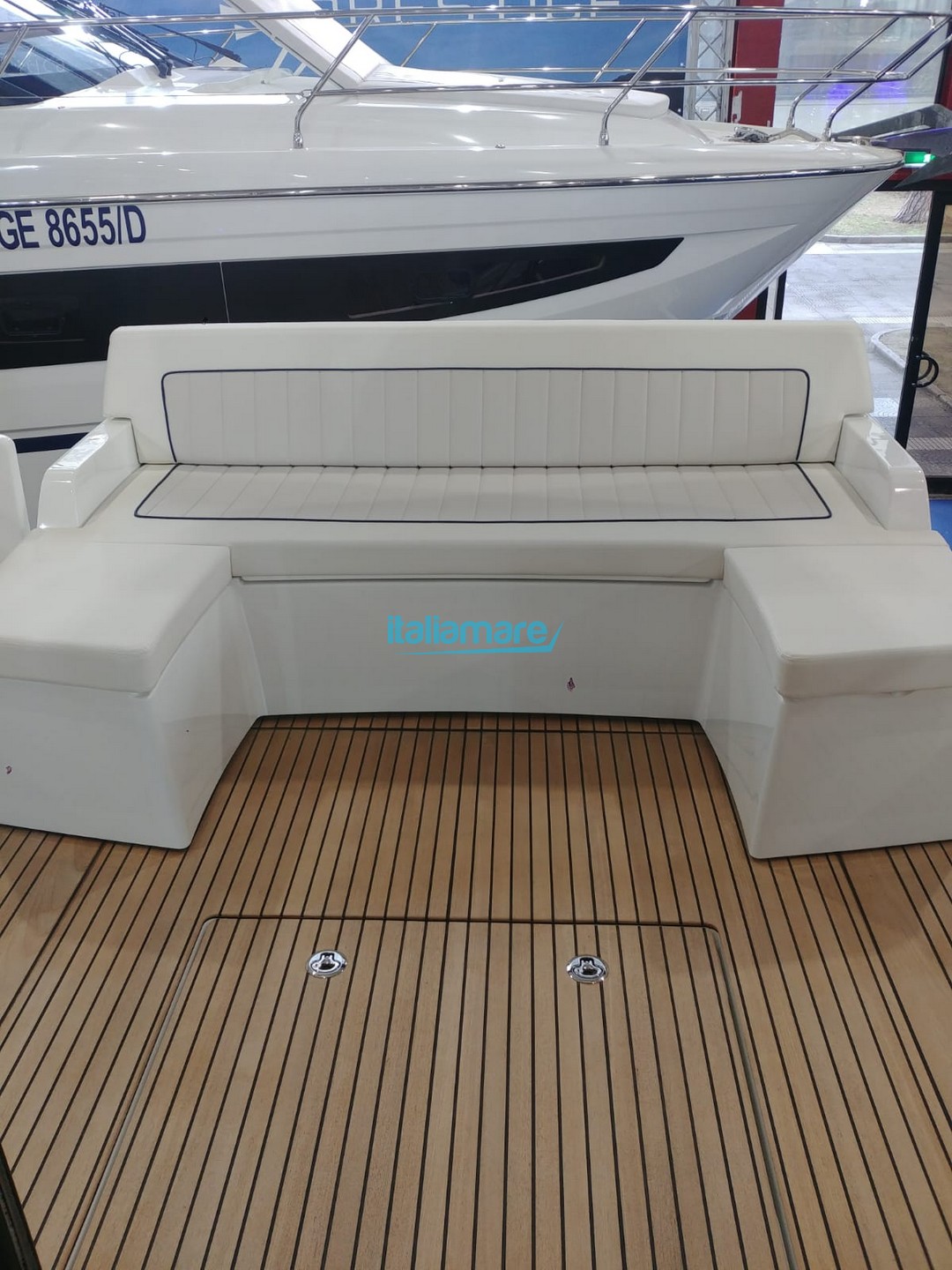 Dotata di porta laterale vicino alla postazione di guida per facilitare l'ormeggio e un ampio pozzetto che può essere trasformato per pranzo o relax, oltre a una piattaforma da bagno idraulica.