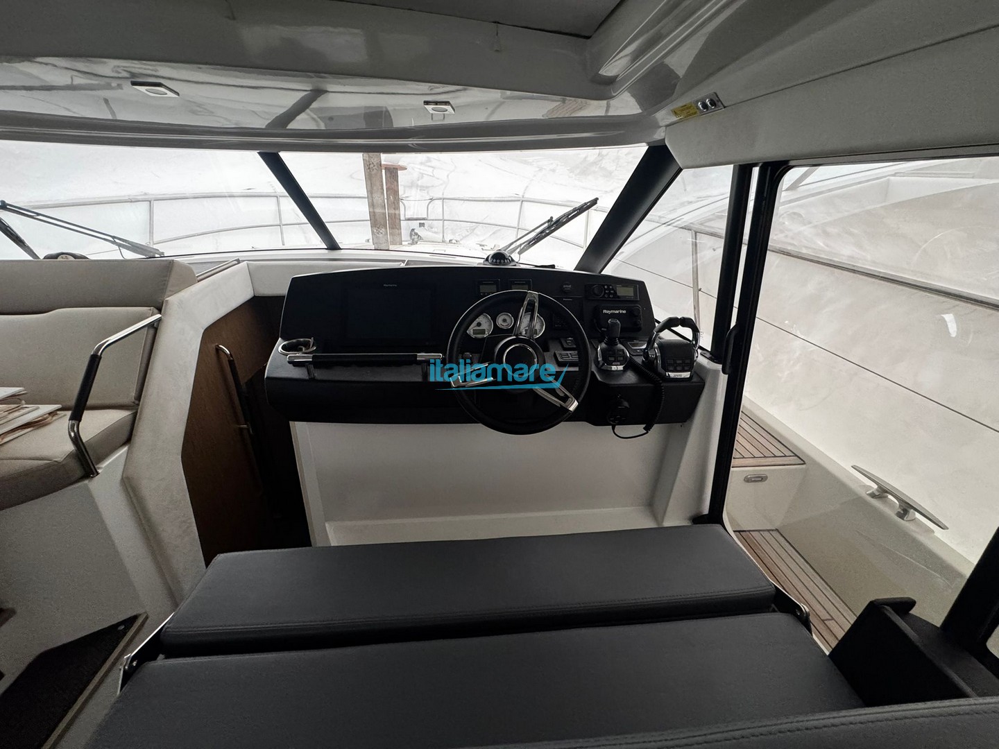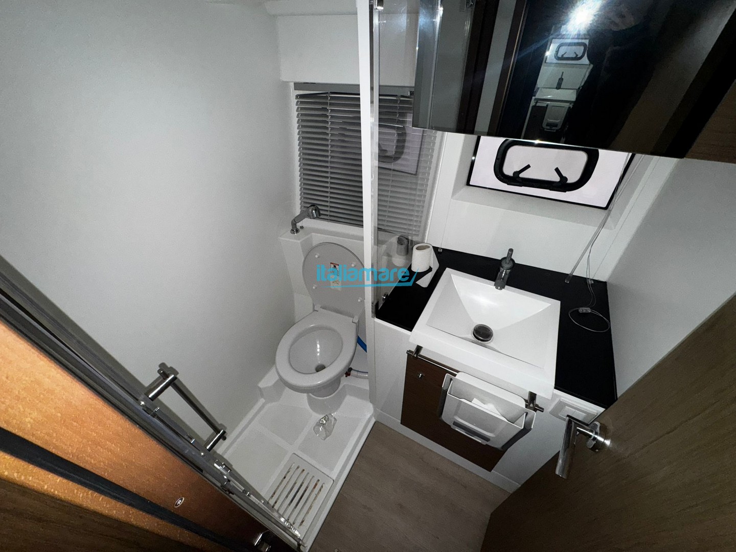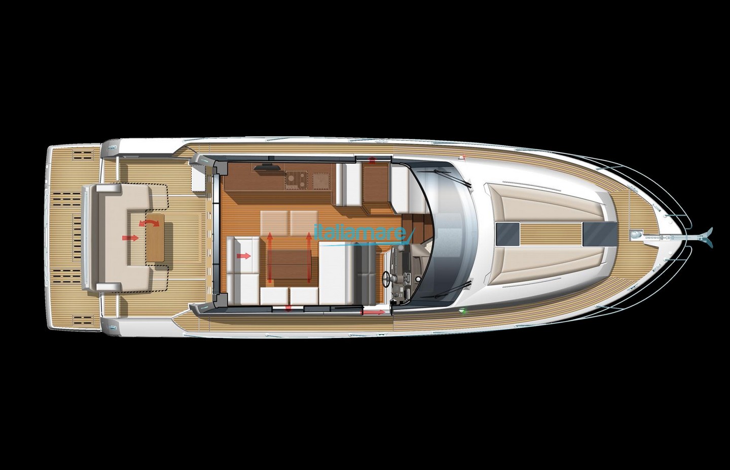 Dotata di porta laterale vicino alla postazione di guida per facilitare l'ormeggio e un ampio pozzetto che può essere trasformato per pranzo o relax, oltre a una piattaforma da bagno idraulica.