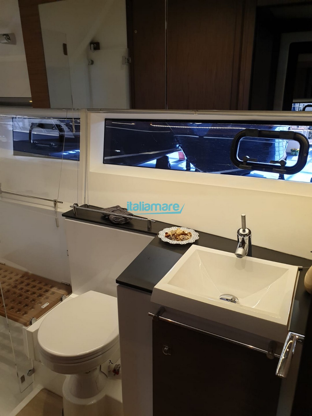 Accessori principali: Aria condizionata - Camminamenti laterali in teak - GPS - Joystick - Pilota automatico - Colorazione speciale Grigio - Elica di prua - Passerella - Piattaforma idraulica - Tavolo pozzetto - Teak in pozzetto - Stereo - TV