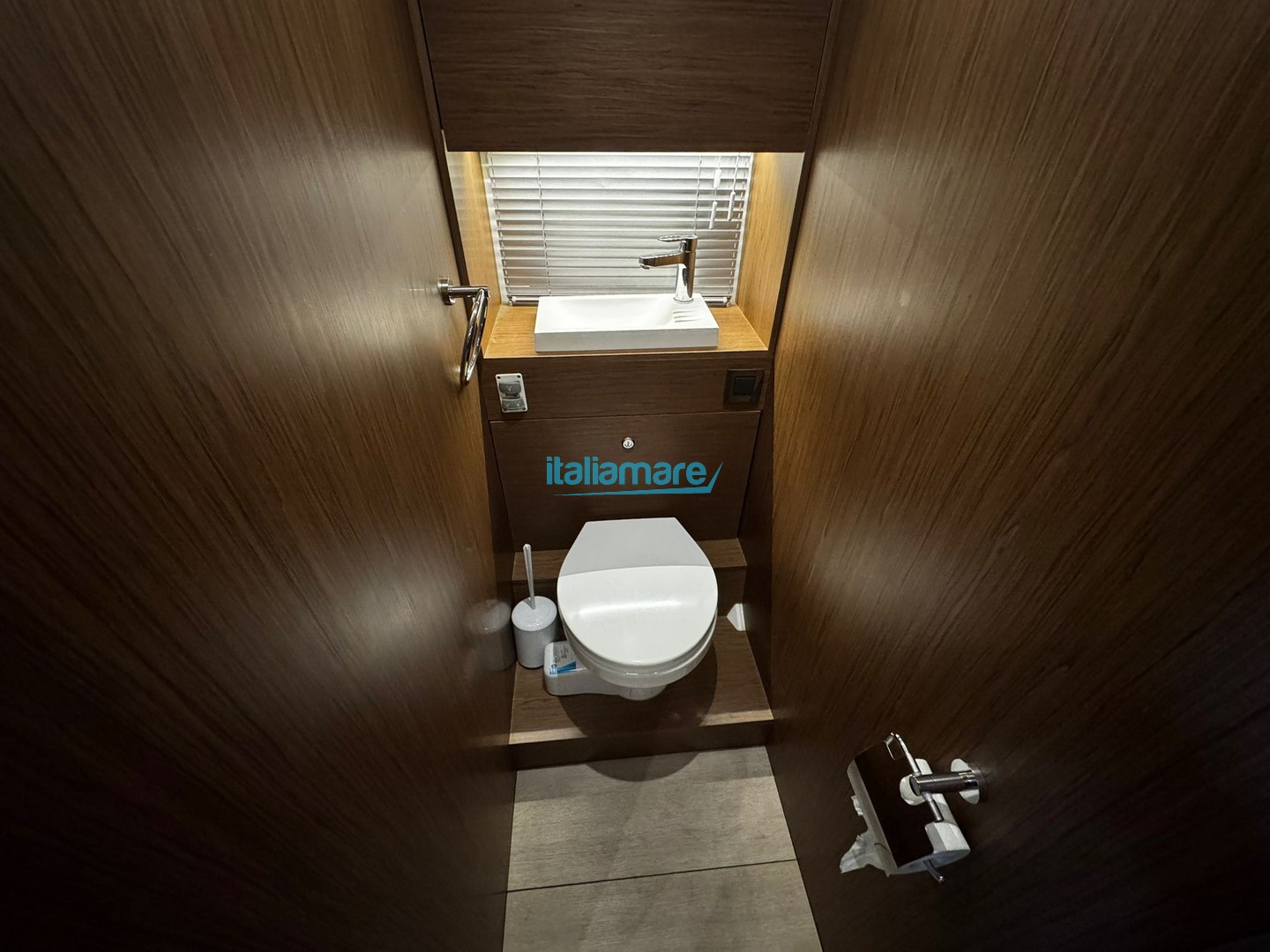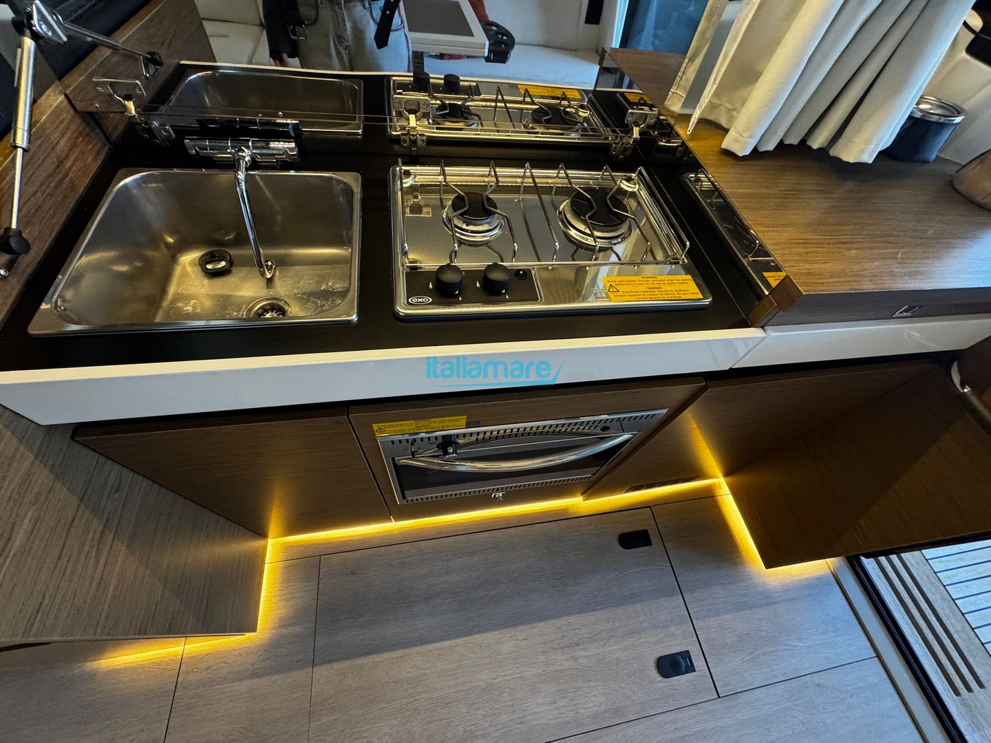 dispone di tre cabine spaziose e confortevoli, con vista mare e ampio spazio di stivaggio. Quest’ultimo può anche essere utilizzato come terza cabina con una cuccetta doppia. Anche la dinette può essere facilmente trasformata in un’ulteriore cuccetta per due persone. La cucina aperta interamente attrezzata, il box doccia indipendente e la toilette del tutto separata.
