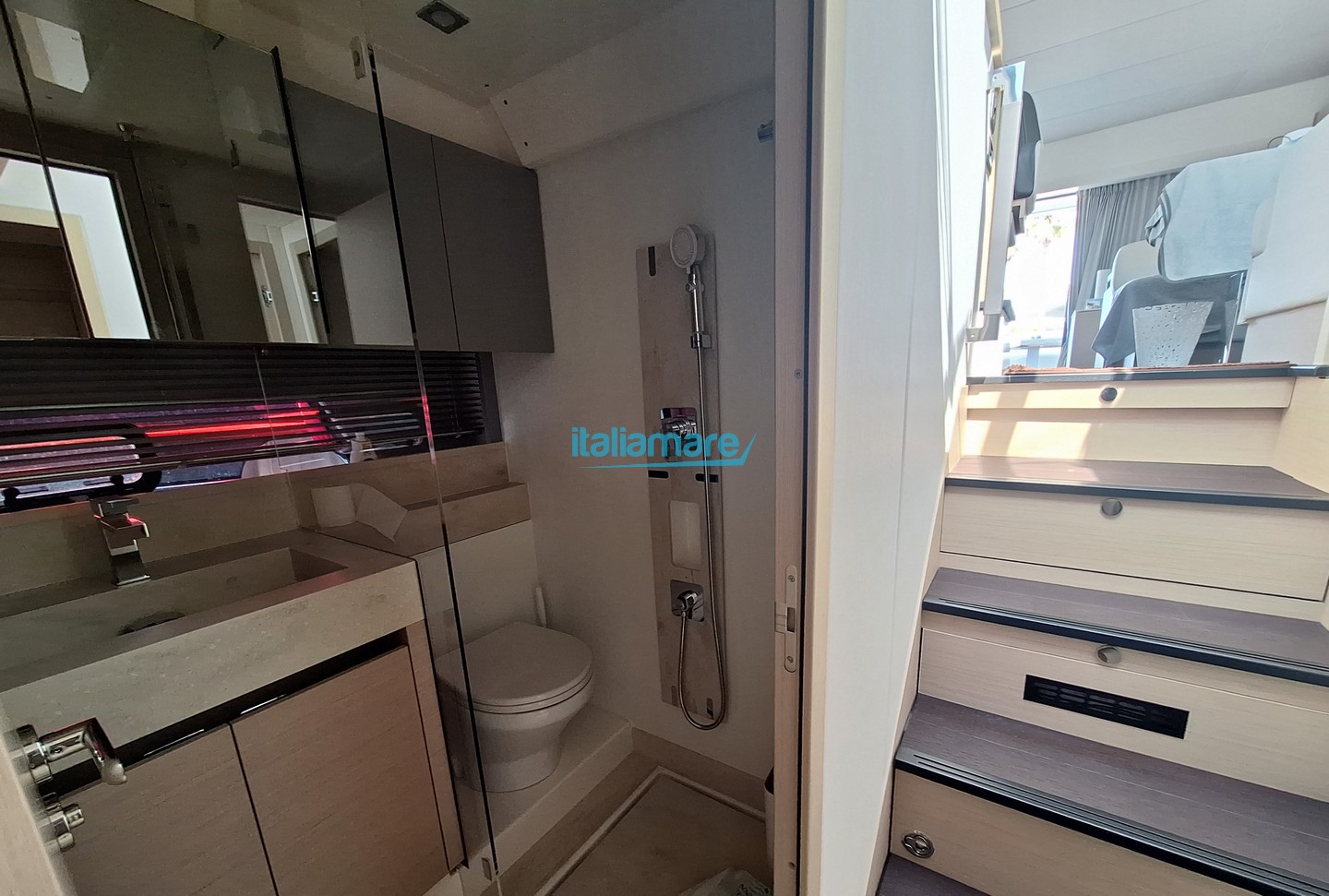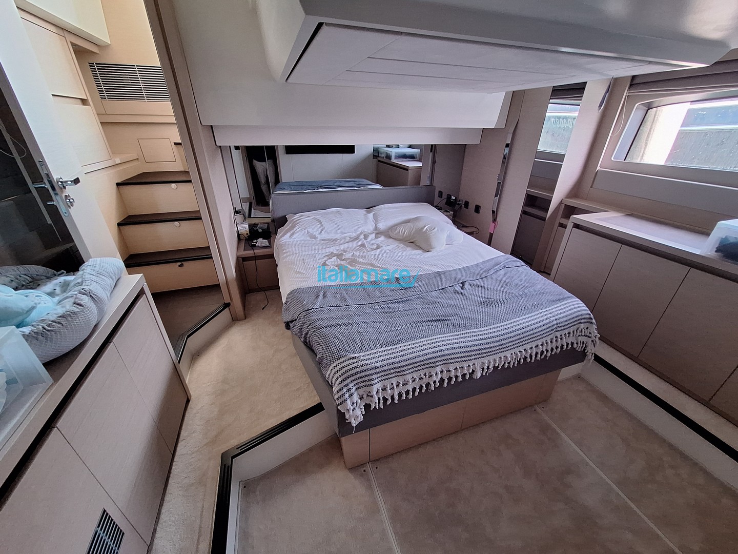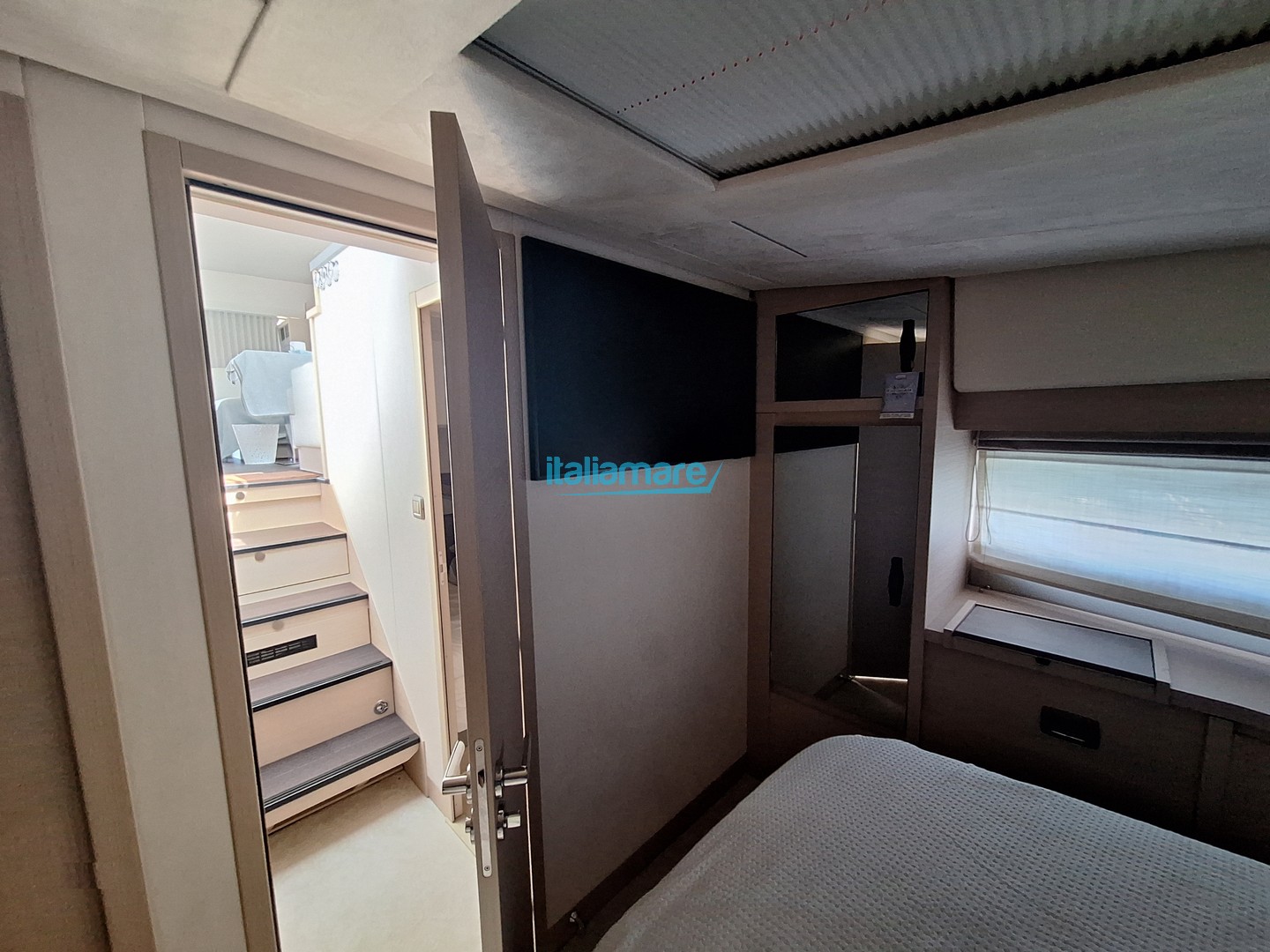 Main accessories: GPS - Generator - Yacht controller - Autopilot - Bow thruster - Gangway - Hydraulic platform - Teak cockpit flooring - Anti-theft system - Air conditioning - Watermaker - Inverter - 5 cameras - 3 TVs