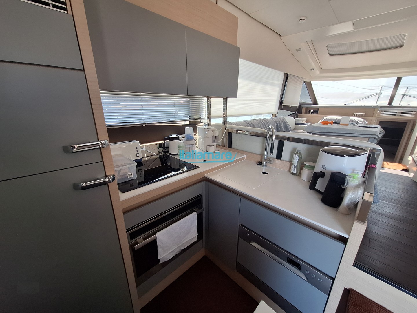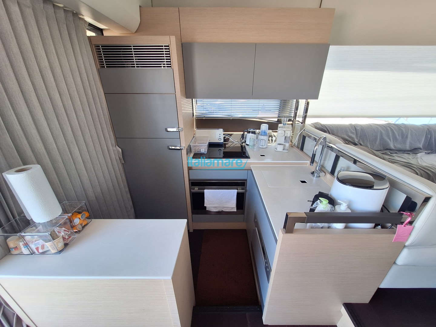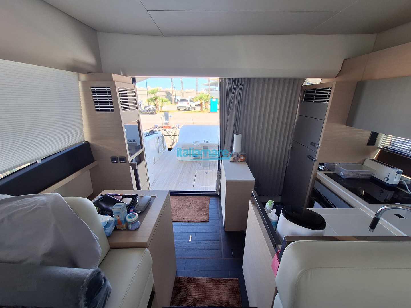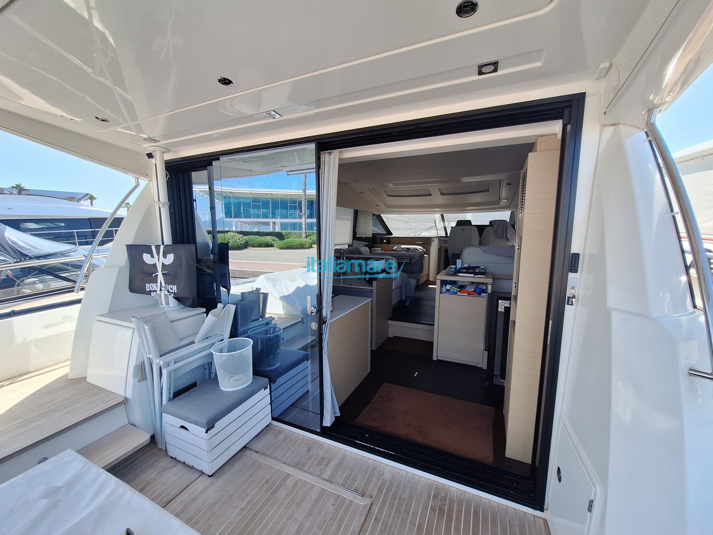 Accessori principali: GPS - Generatore - Yacht controller - Pilota automatico - Elica di prua - Passerella - Piattaforma idraulica - Teak in pozzetto - Antifurto - Aria condizionata - Dissalatore - Inverter - 5 Telecamere - 3 TV - Sistema Assisted Docking - Apertura e chiusura della porta d'ingresso da remoto