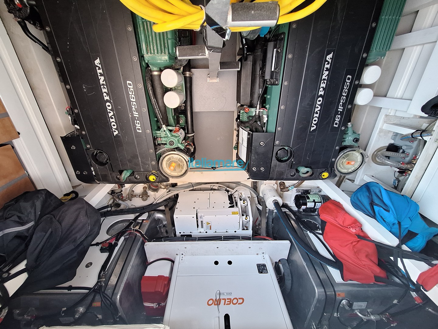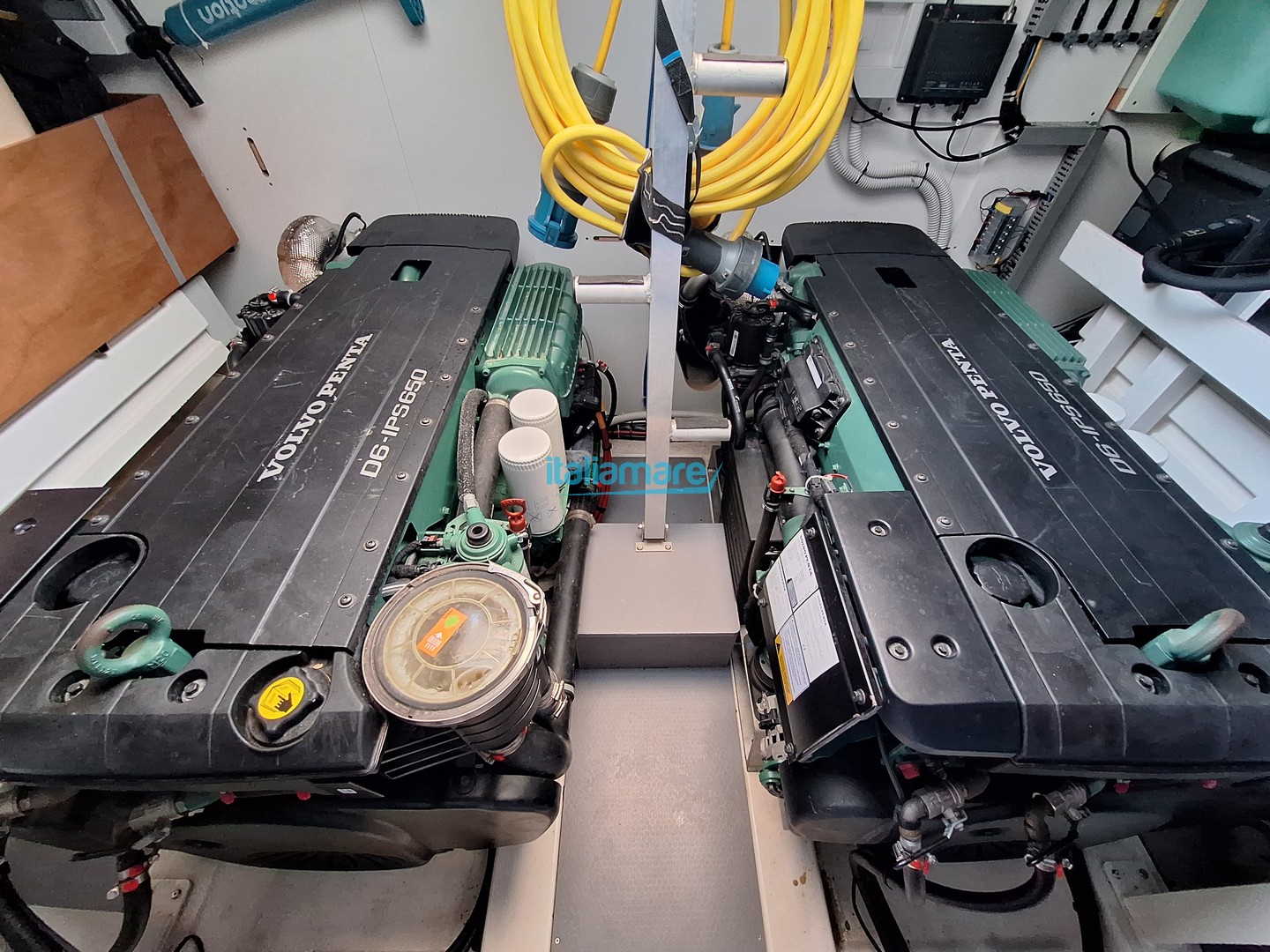 Allestimento tecnico e di coperta: Allarme motore - Allarme sentina - Ancora - Autoclave - Auto-Trim - 6 Batterie 12kw - 2 Caricabatterie - Doccia esterna - Elica di prua - bow thruster - Faro orientabile - Flap elettrici - Hard top - Impianto antincendio - Indicatori Flaps - Luci di cortesia - Luci subacquee - Pannelli Solari - Passerella - Piattaforma (idraulica) - Pompa di sentina automatica - Pompa di sentina elettrica - Porta laterale - Pozzetto Teak - Presa 220V banchina - Presa acqua banchina - Salpa Ancore Elettrico - Scaletta da bagno - Tavolo pozzetto - Tender - Winch tonneggio di poppa - Winch tonneggio di prua