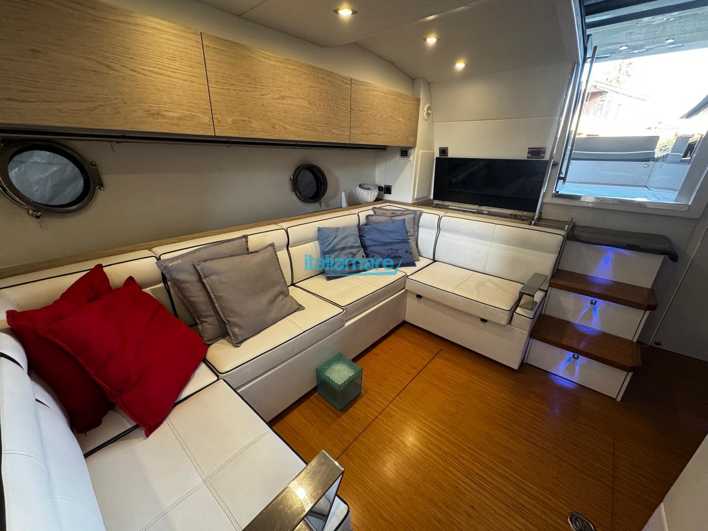 Main Accessories: Air Conditioning – Bow Thruster – Electric Hard Top – GPS – TV System – Gangway – Hydraulic Platform – Autopilot – Teak Cockpit – Stereo System.