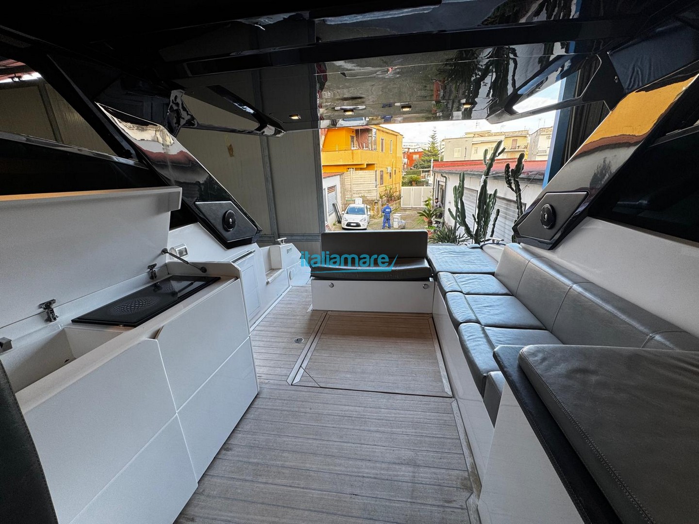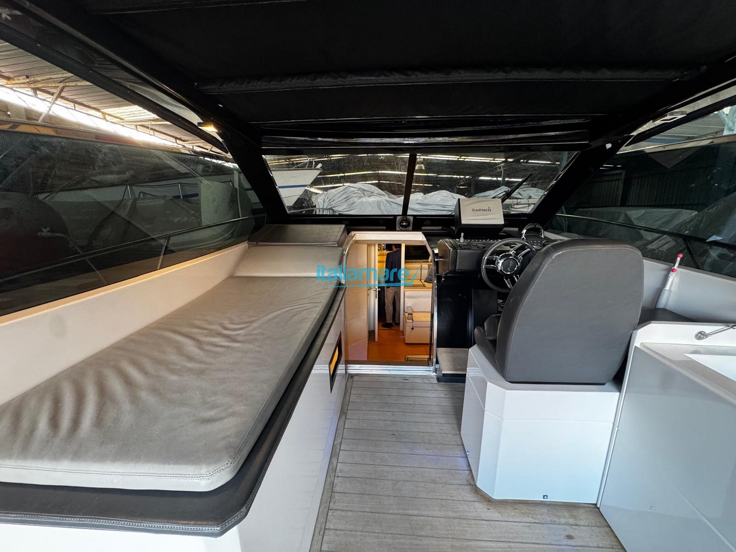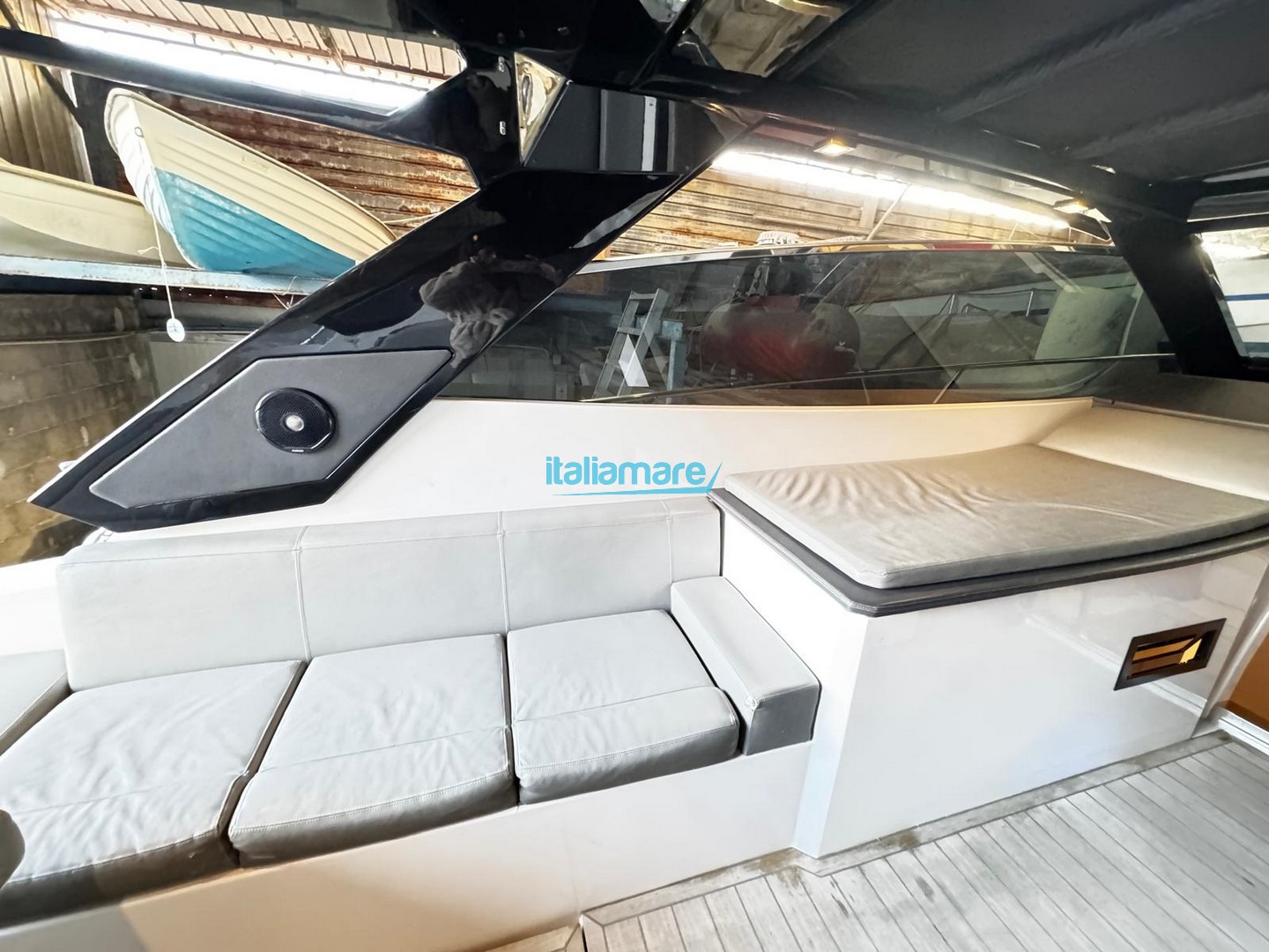 It stands out for its electric hard-top, which allows you to switch from a sheltered, enclosed boat to a completely "en plein air" experience in just a matter of seconds.