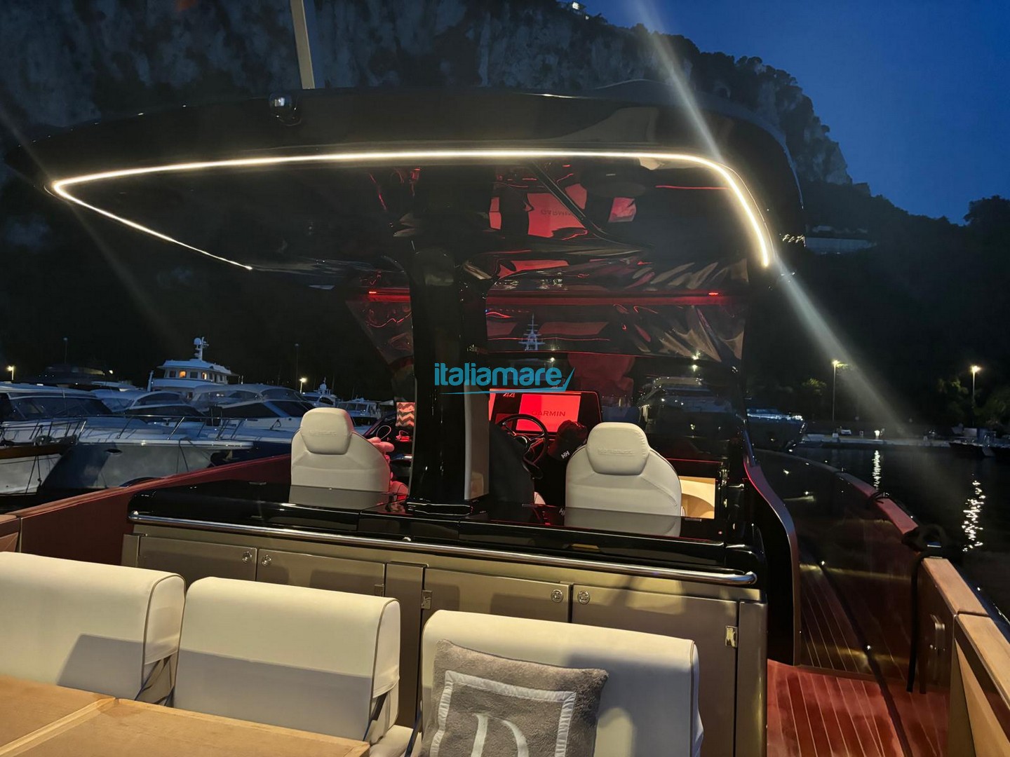 It stands out for its deep V-hull, which guarantees an extremely soft, dry, and silent ride even in rough sea conditions.