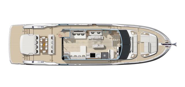 La F6.7 esprime così un'eleganza contemporanea, semplice e duratura, per celebrare pienamente l'Arte di Vivere PRESTIGE in mare.